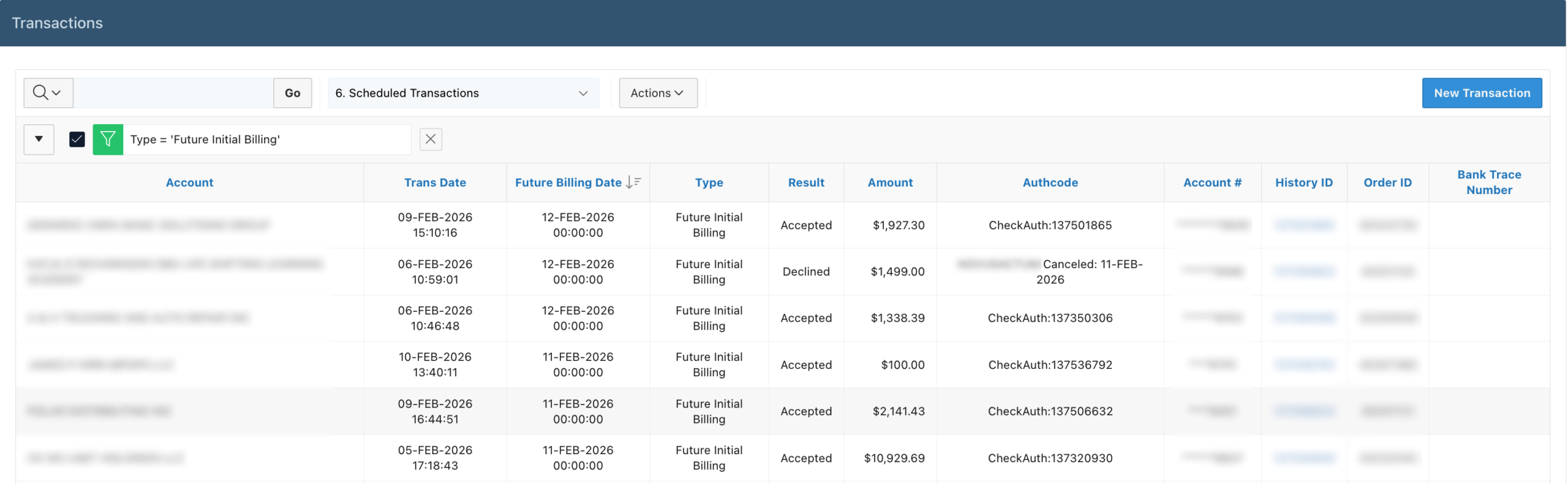 Typically, the Scheduled Transactions report accounts for any Debit transactions intended to debit or bill a merchant’s client in the future, or any day ahead of the current date.