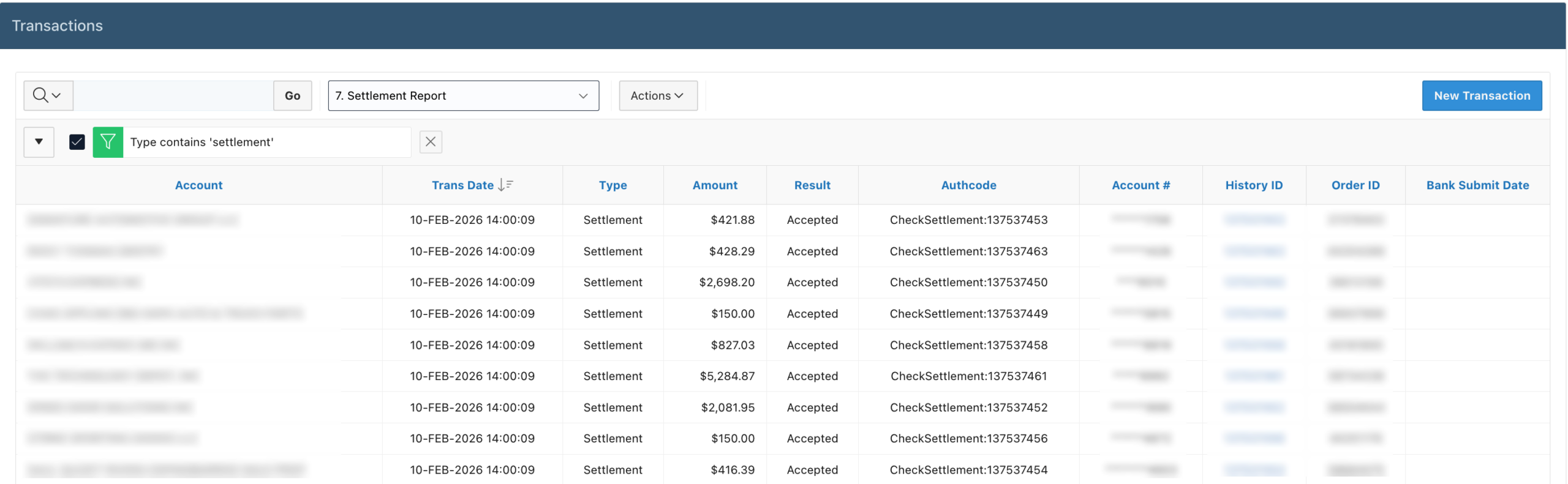 Viewing Settled Transactions